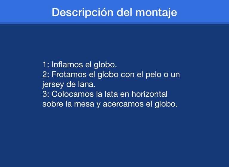 3: Colocamos la lata en horizontal sobre la mesa y acercamos el globo.
