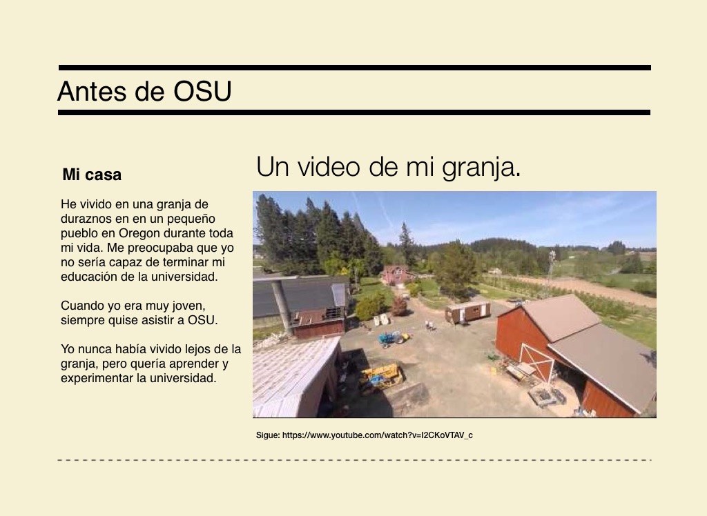 He vivido en una granja de duraznos en en un pequeño pueblo en Oregon durante toda mi vida. Me preocupaba que yo no sería capaz de terminar mi educación de la universidad.