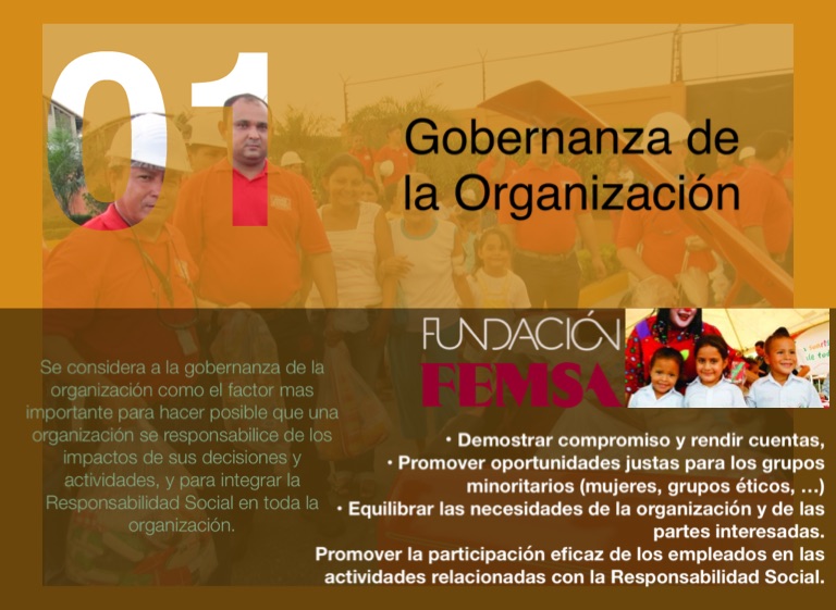 Se considera a la gobernanza de la organización como el factor mas importante para hacer posible que una organización se responsabilice de los impactos de sus decisiones y actividades, y para integrar la Responsabilidad Social en toda la organización.