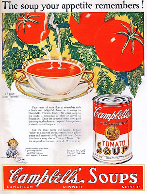 Pre-made processed foods were on the rise in the 20's. People were beginning to pursue the convenience of having easy meals at home. Campbell's remains a very popular brand to this day.