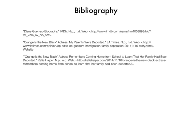 "Diane Guerrero Biography." IMDb. N.p., n.d. Web. <http://www.imdb.com/name/nm4058898/bio?ref_=nm_ov_bio_sm>.