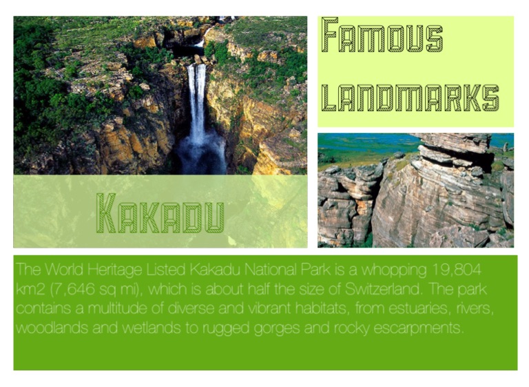 The World Heritage Listed Kakadu National Park is a whopping 19,804 km2 (7,646 sq mi), which is about half the size of Switzerland. The park contains a multitude of diverse and vibrant habitats, from estuaries, rivers, woodlands and wetlands to rugged gorges and rocky escarpments.