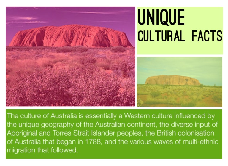 The culture of Australia is essentially a Western culture influenced by the unique geography of the Australian continent, the diverse input of Aboriginal and Torres Strait Islander peoples, the British colonisation of Australia that began in 1788, and the various waves of multi-ethnic migration that followed.