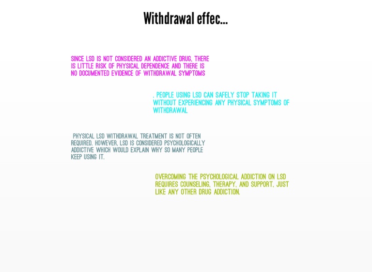 physical LSD withdrawal treatment is not often required. However, LSD is considered psychologically addictive which would explain why so many people keep using it.
