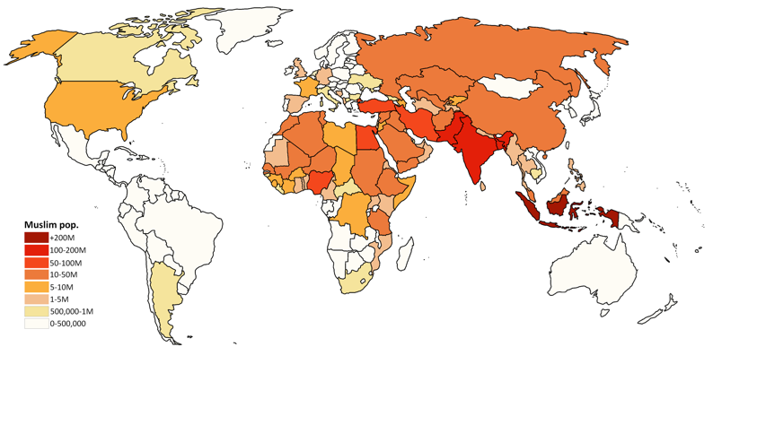 It is practiced throughout most of the world. It is the second ranked religion with 1.57 billion followers. It is practiced mostly throughout the Middle East including Southwest Asia and North Africa.