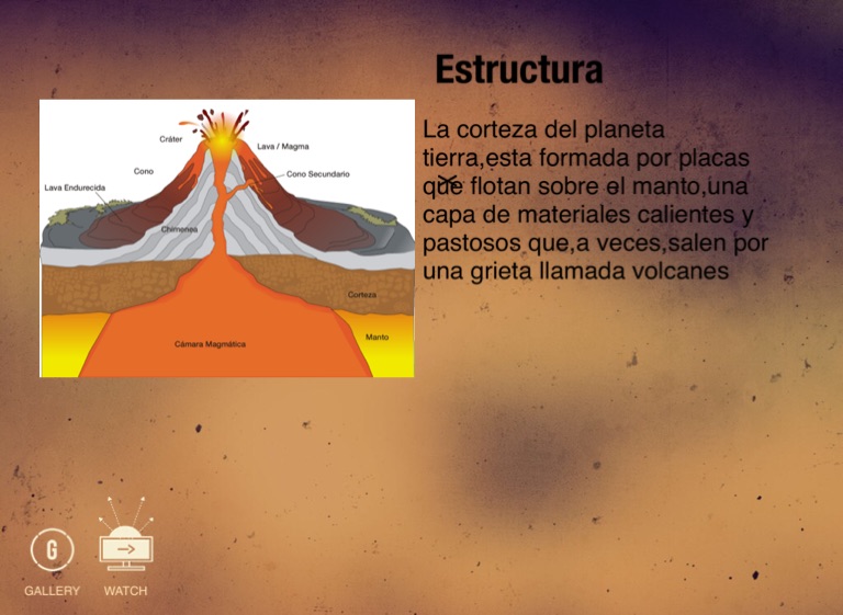 La corteza del planeta tierra,esta formada por placas que flotan sobre el manto,una capa de materiales calientes y pastosos que,a veces,salen por una grieta llamada volcanes