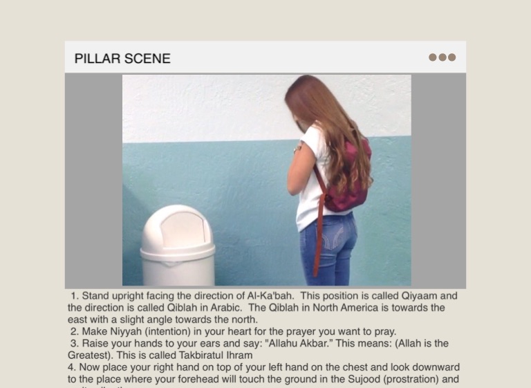 1. Stand upright facing the direction of Al-Ka'bah. This position is called Qiyaam and the direction is called Qiblah in Arabic. The Qiblah in North America is towards the east with a slight angle towards the north.
