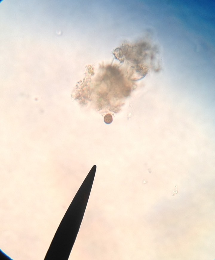 This is a picture of algae at 10x magnification. There are a little bit of mesophyll and palisade cells seen in the far left of the picture and at the bottom you can also see some stoma. The algae are important to pond animals because it is a large source of food.
