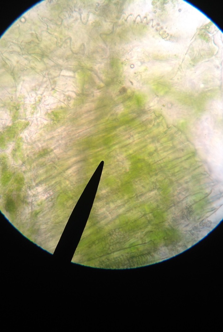 This is a picture of a broad leaf magnified at 10x. in the picture you can see palisade and mesophyll cells. The longer cells are the vascular ones and the small black dots are the stoma. The broad leaf is a common food for animals.