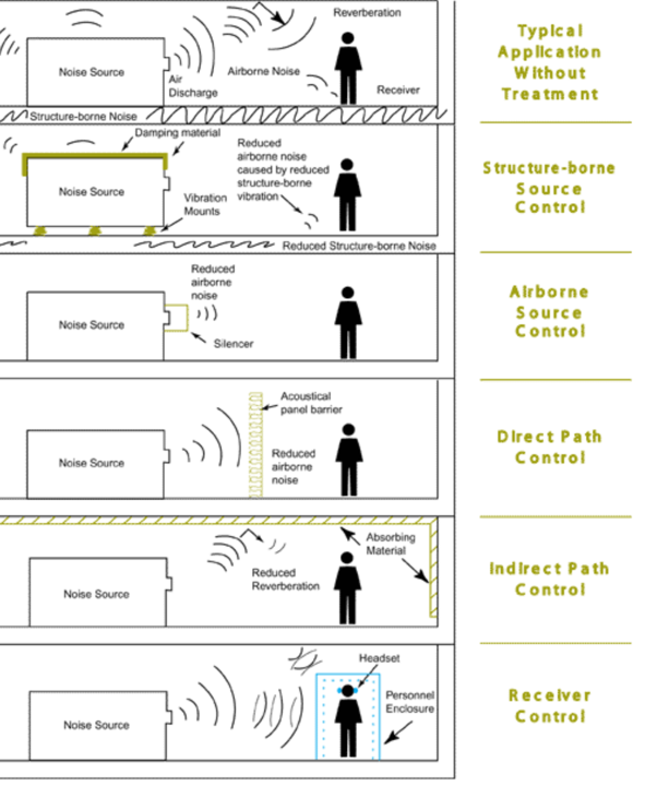 Noise Control : A Set of strategies with the purpose of reducing noise pollution or to reduce the impact of noise outside or inside