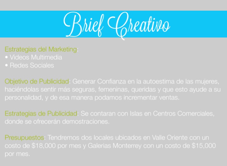 Objetivo de Publicidad: Generar Confianza en la autoestima de las mujeres, haciéndolas sentir más seguras, femeninas, queridas y que esto ayude a su personalidad, y de esa manera podamos incrementar ventas.