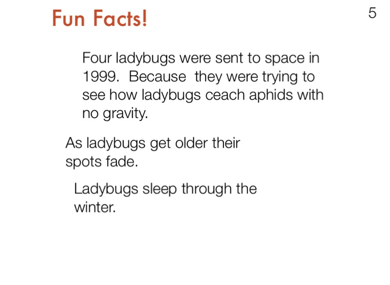 Four ladybugs were sent to space in 1999. Because they were trying to see how ladybugs ceach aphids with no gravity.