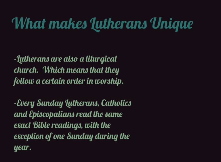 -Every Sunday Lutherans, Catholics and Episcopalians read the same exact Bible readings, with the exception of one Sunday during the year.