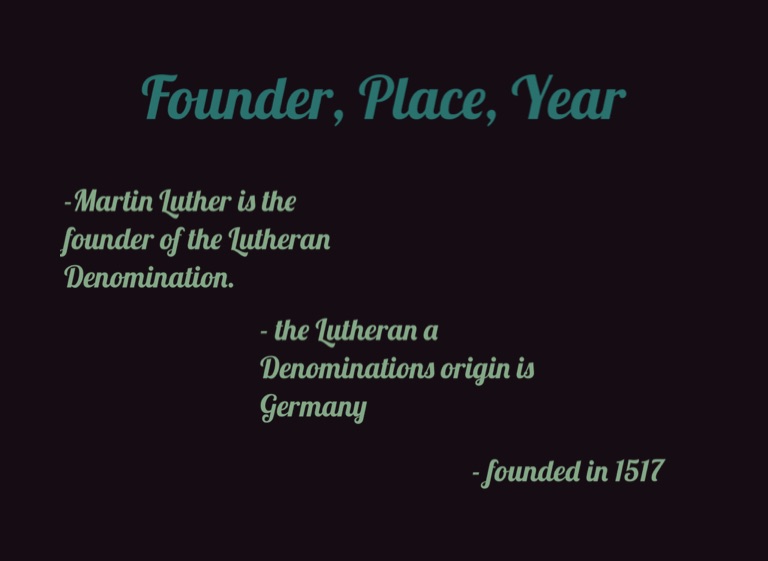 -Martin Luther is the founder of the Lutheran Denomination.