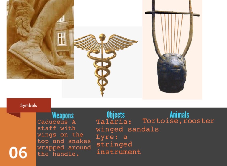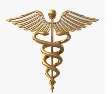 Caduceus A staff with wings on the top and snakes wrapped around the handle.