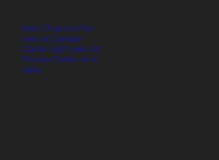 Main Charcters:Ten year old George Calder. Eight year old Phoebe Calder. Aunt daisy.