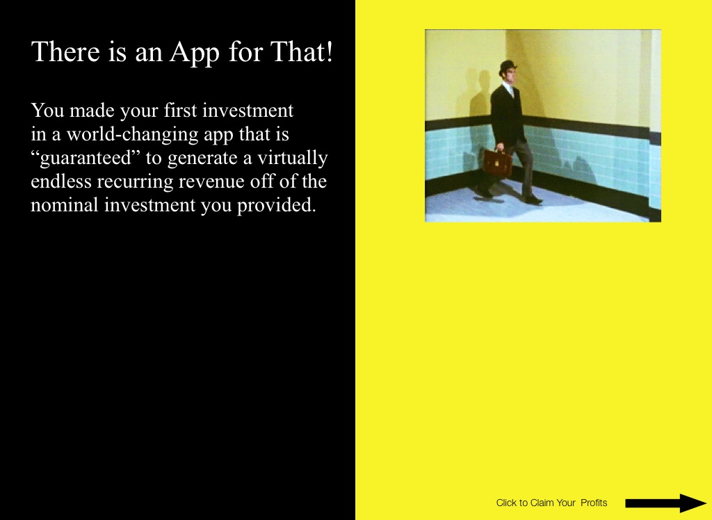 in a world-changing app that is “guaranteed” to generate a virtually endless recurring revenue off of the nominal investment you provided.