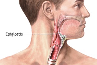 2 - The larynx is covered by a flap called the epiglottis, a flap, like a trap door, opens when breathing but closes when swallowing