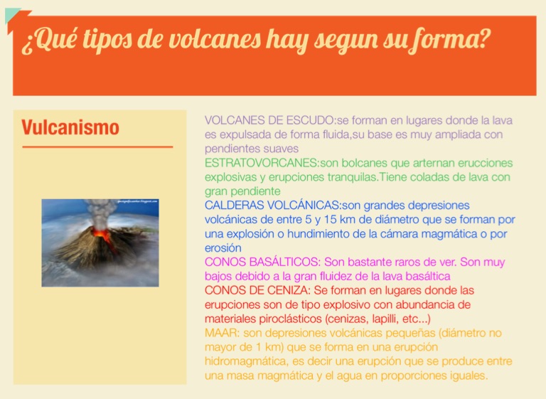 VOLCANES DE ESCUDO:se forman en lugares donde la lava es expulsada de forma fluida,su base es muy ampliada con pendientes suaves