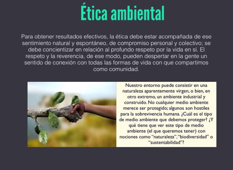 Para obtener resultados efectivos, la ética debe estar acompañada de ese sentimiento natural y espontáneo, de compromiso personal y colectivo; se debe concientizar en relación al profundo respeto por la vida en sí. El respeto y la reverencia, de ese modo, pueden despertar en la gente un sentido de conexión con todas las formas de vida con que compartimos como comunidad.