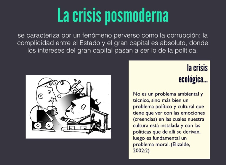 No es un problema ambiental y técnico, sino más bien un problema político y cultural que tiene que ver con las emociones (creencias) en las cuales nuestra cultura está instalada y con las políticas que de allí se derivan, luego es fundamental un problema moral. (Elizalde, 2002:2)