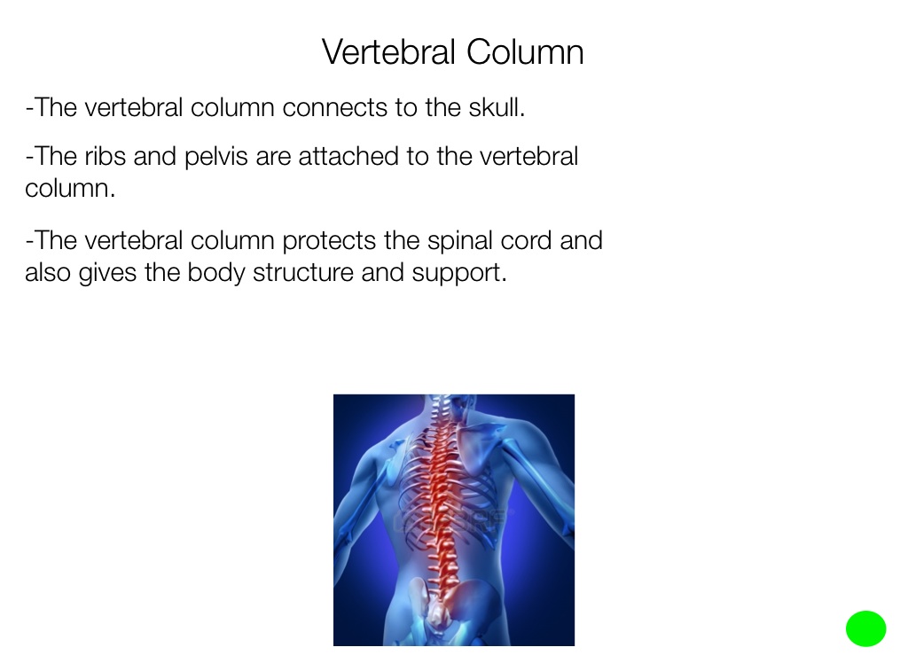 -The vertebral column protects the spinal cord and also gives the body structure and support.