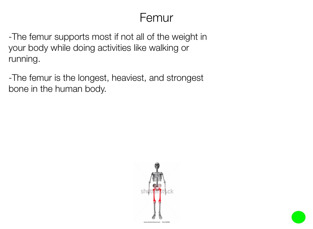 -The femur supports most if not all of the weight in your body while doing activities like walking or running.