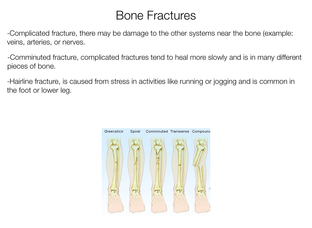 -Complicated fracture, there may be damage to the other systems near the bone (example: veins, arteries, or nerves.