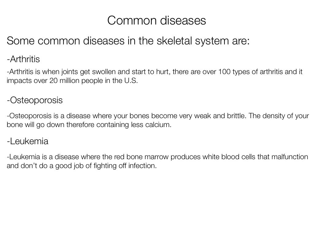 Some common diseases in the skeletal system are: