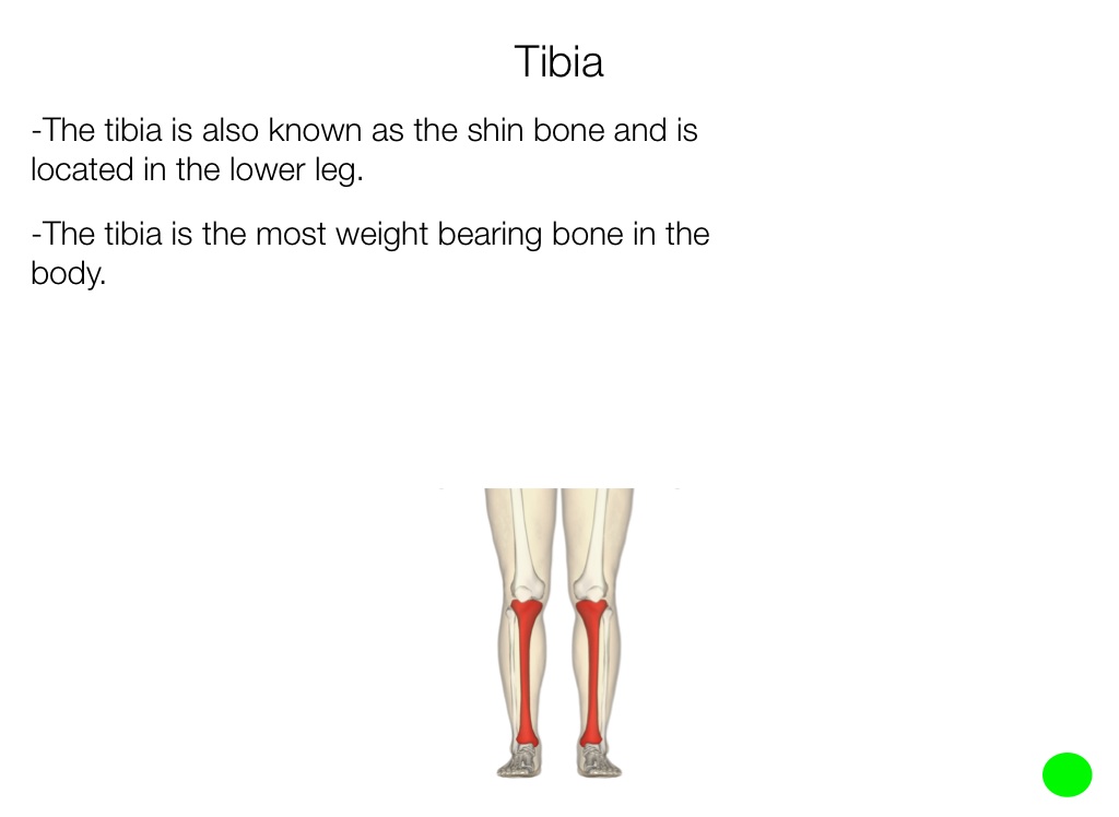 -The tibia is also known as the shin bone and is located in the lower leg.