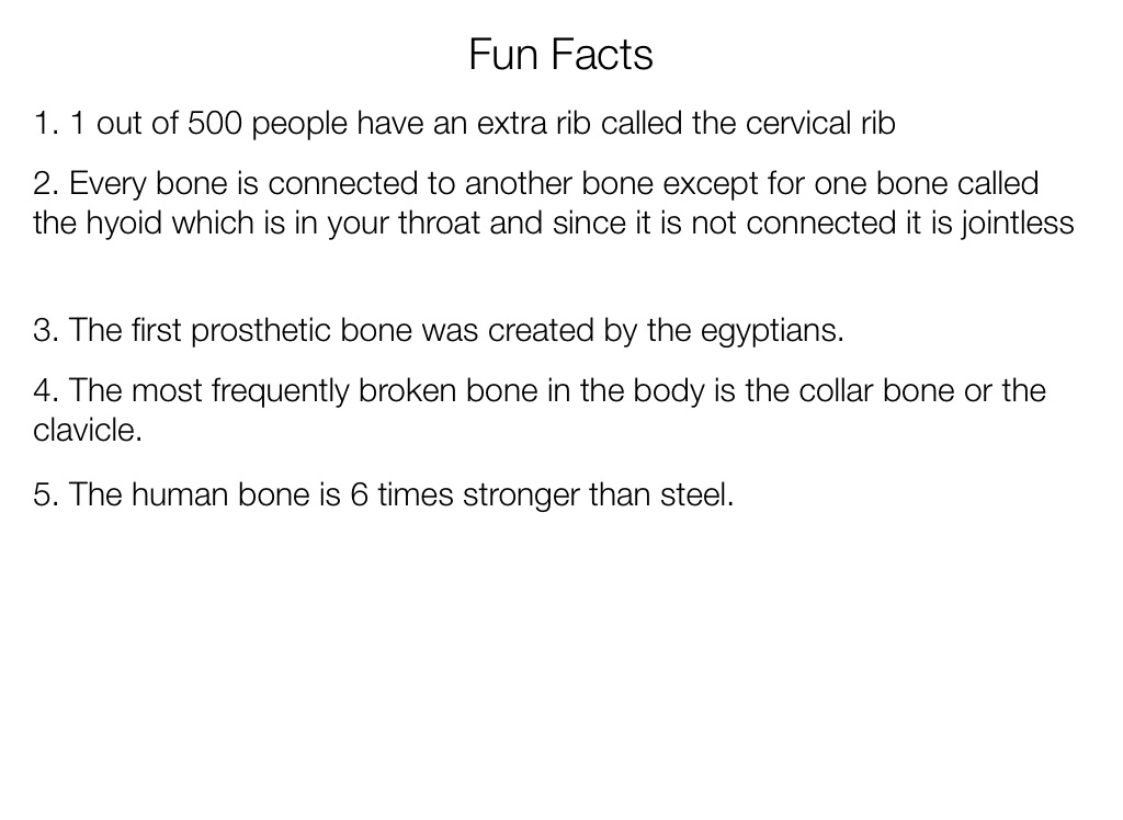 2. Every bone is connected to another bone except for one bone called the hyoid which is in your throat and since it is not connected it is jointless