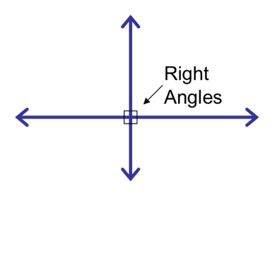 Perpendicular lines are two lines that cross at a 90 degree angle