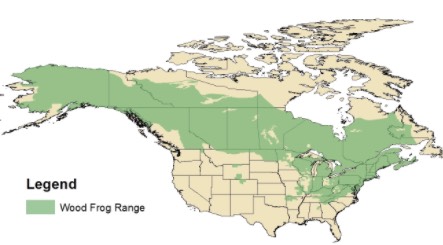 Locations: Wood frogs are found throughout the forests of Alaska and the northeast. They are found in smaller numbers as far south as Alabama and northwest into Idaho. They are the only frog that lives north of the Arctic Circle.