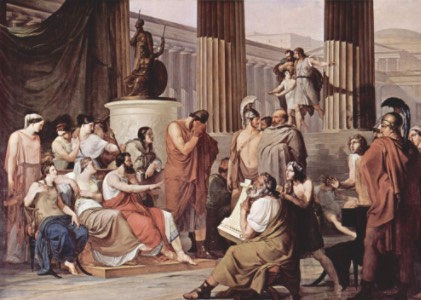 Alcinous agrees to help Odysseus get back home. But first he throws a feast for Odysseus. And then gives him a ship and sends him on his way.