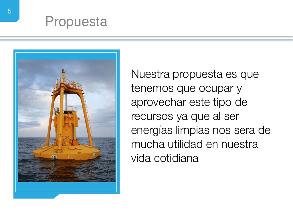 Nuestra propuesta es que tenemos que ocupar y aprovechar este tipo de recursos ya que al ser energĂas limpias nos sera de mucha utilidad en nuestra vida cotidiana