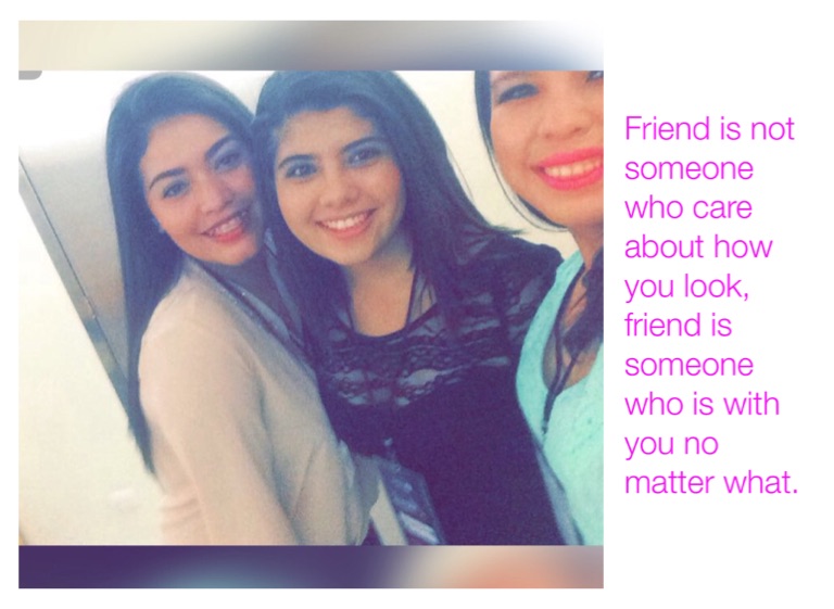 Friend is not someone who care about how you look, friend is someone who is with you no matter what.