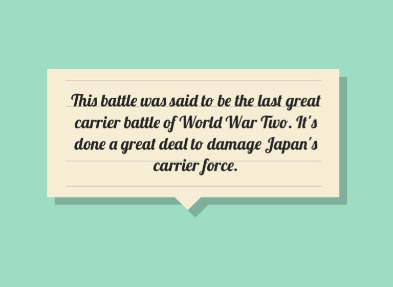 This battle was said to be the last great carrier battle of World War Two. It's done a great deal to damage Japan's carrier force.