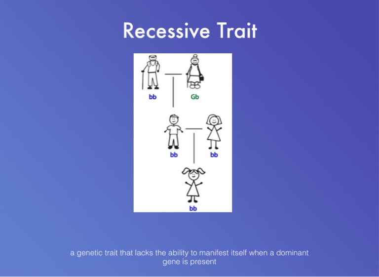 a genetic trait that lacks the ability to manifest itself when a dominant gene is present