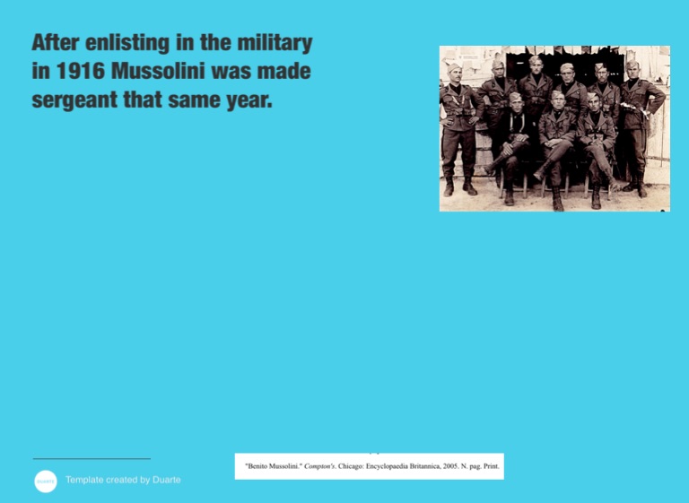 After enlisting in the military in 1916 Mussolini was made sergeant that same year.
