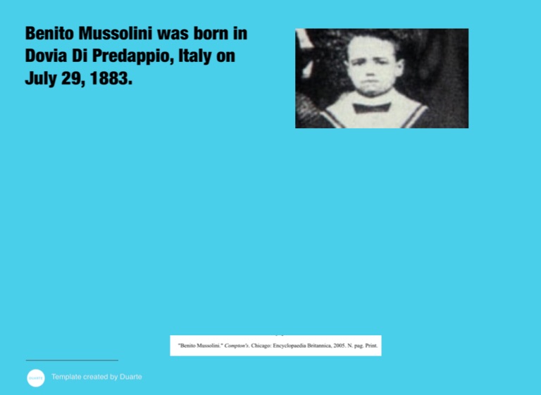 Benito Mussolini was born in Dovia Di Predappio, Italy on July 29, 1883.