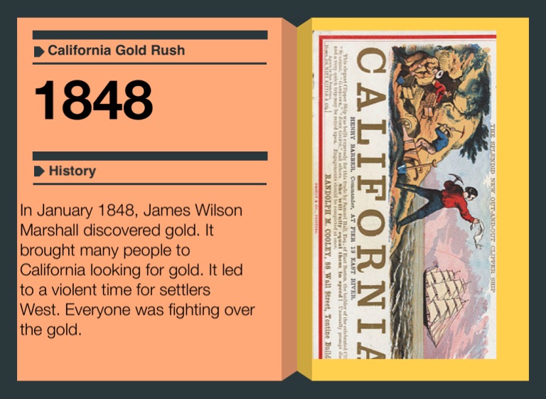 In January 1848, James Wilson Marshall discovered gold. It brought many people to California looking for gold. It led to a violent time for settlers West. Everyone was fighting over the gold.