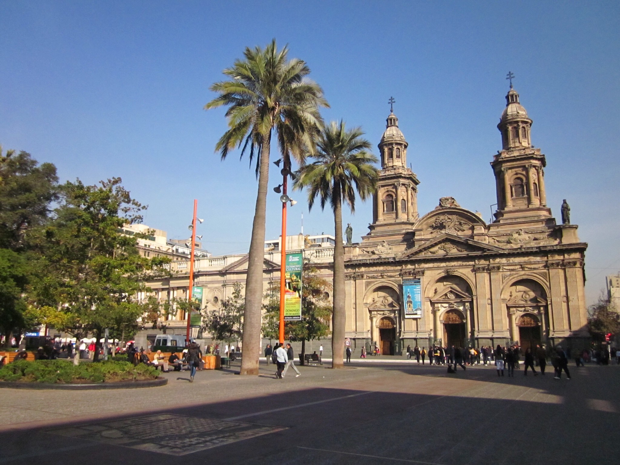 La plaza está rodeado de edificios más importantes de Santiago, incluyendo la Catedral Metropolitana, la Municipalidad, y el Correo Central.