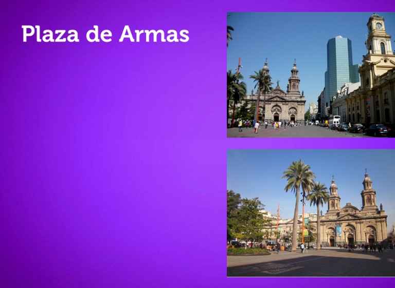 La Plaza de Armas es la plaza principal de Santiago. Es el centro de la disposición inicial de Santiago, que un patrón de cuadricula.