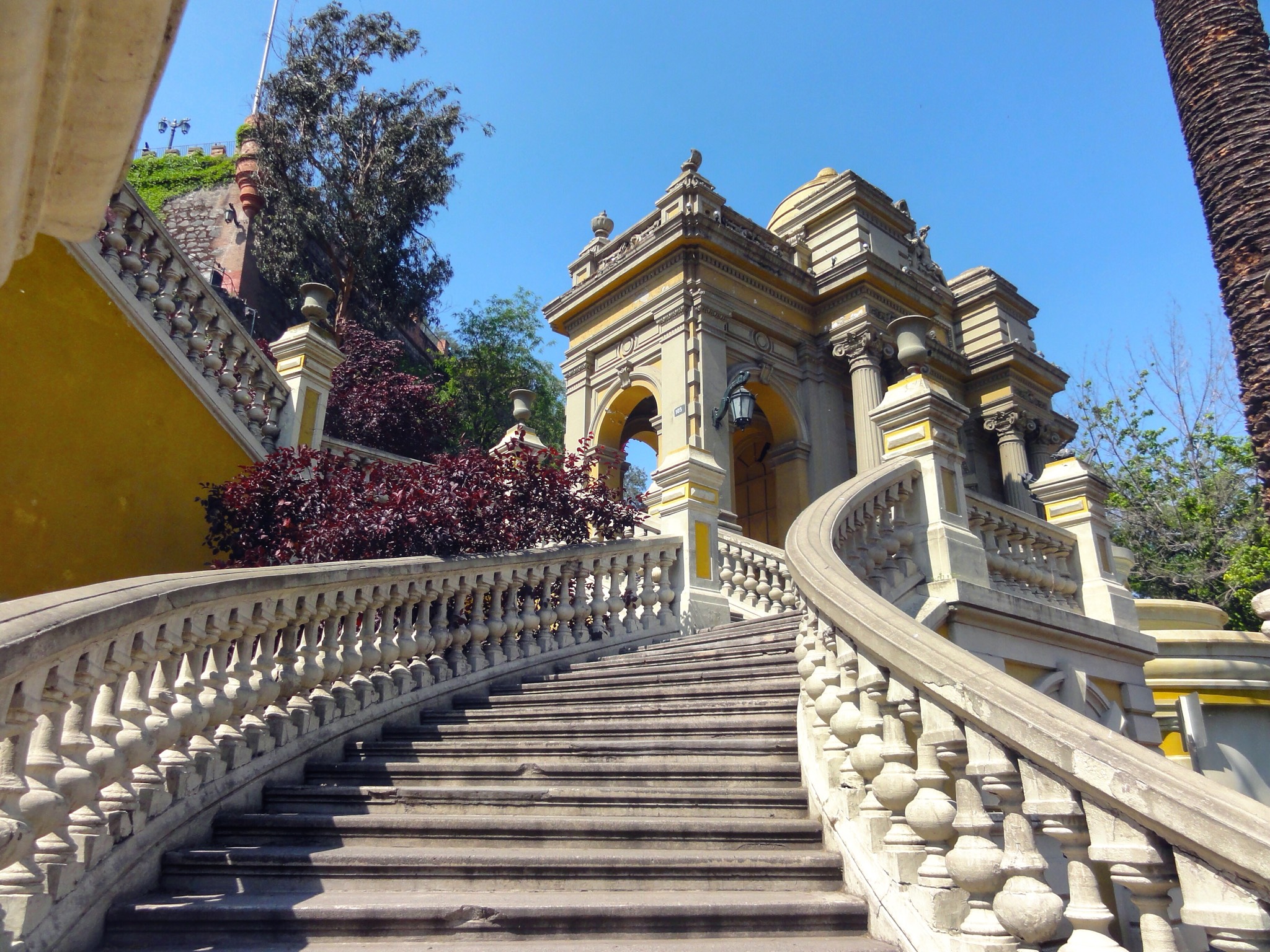 - un cerro pequeño con fachadas, fuentes, y escaleras