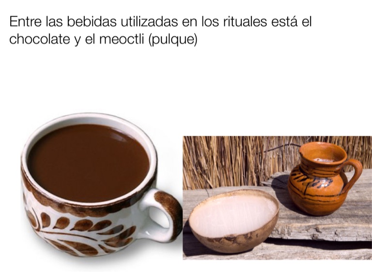 Entre las bebidas utilizadas en los rituales está el chocolate y el meoctli (pulque)