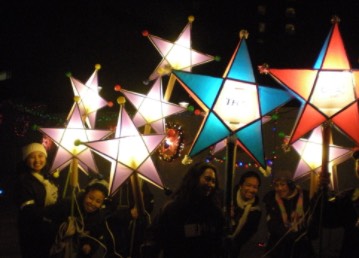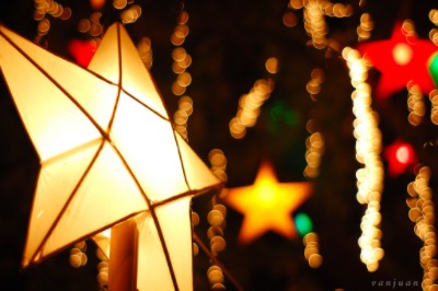 A Christmas Parol is a star lantern made of a bamboo frame and colored tissue paper. They hang them up to symbolize the star that guided the shepherds.