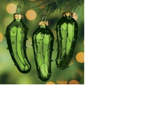 In the 1880s stores started selling ornaments imported from Germany that were various fruits in vegetables, including a pickle. The Christmas pickle tradition is to hang it up, and whoever finds the Christmas pickle first later will receive an extra gift. The Christmas pickle has many myths and legends on its origination, although none being plausible.