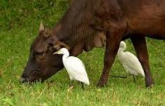Cattle and cattle egrets-The cattle egret will eat insects that have been disturbed when the cattle forage.