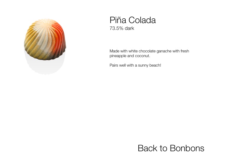 Made with white chocolate ganache with fresh pineapple and coconut.