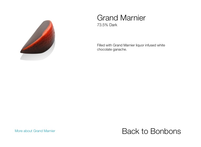 Filled with Grand Marnier liquor infused white chocolate ganache.